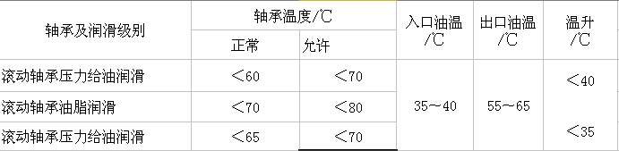 (1)、軸承的潤滑、冷卻情況以及溫度變化,如下表: